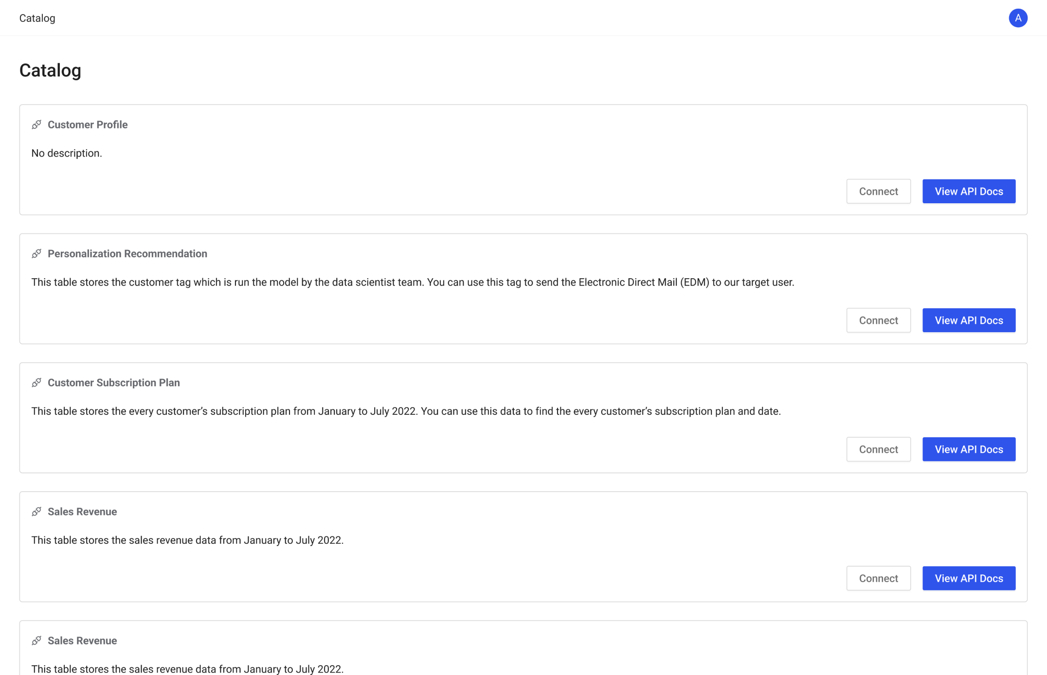 Automatically build complete API documentation(OpenAPI) and catalog for data consumers and web engineer. Learn about API documentation.